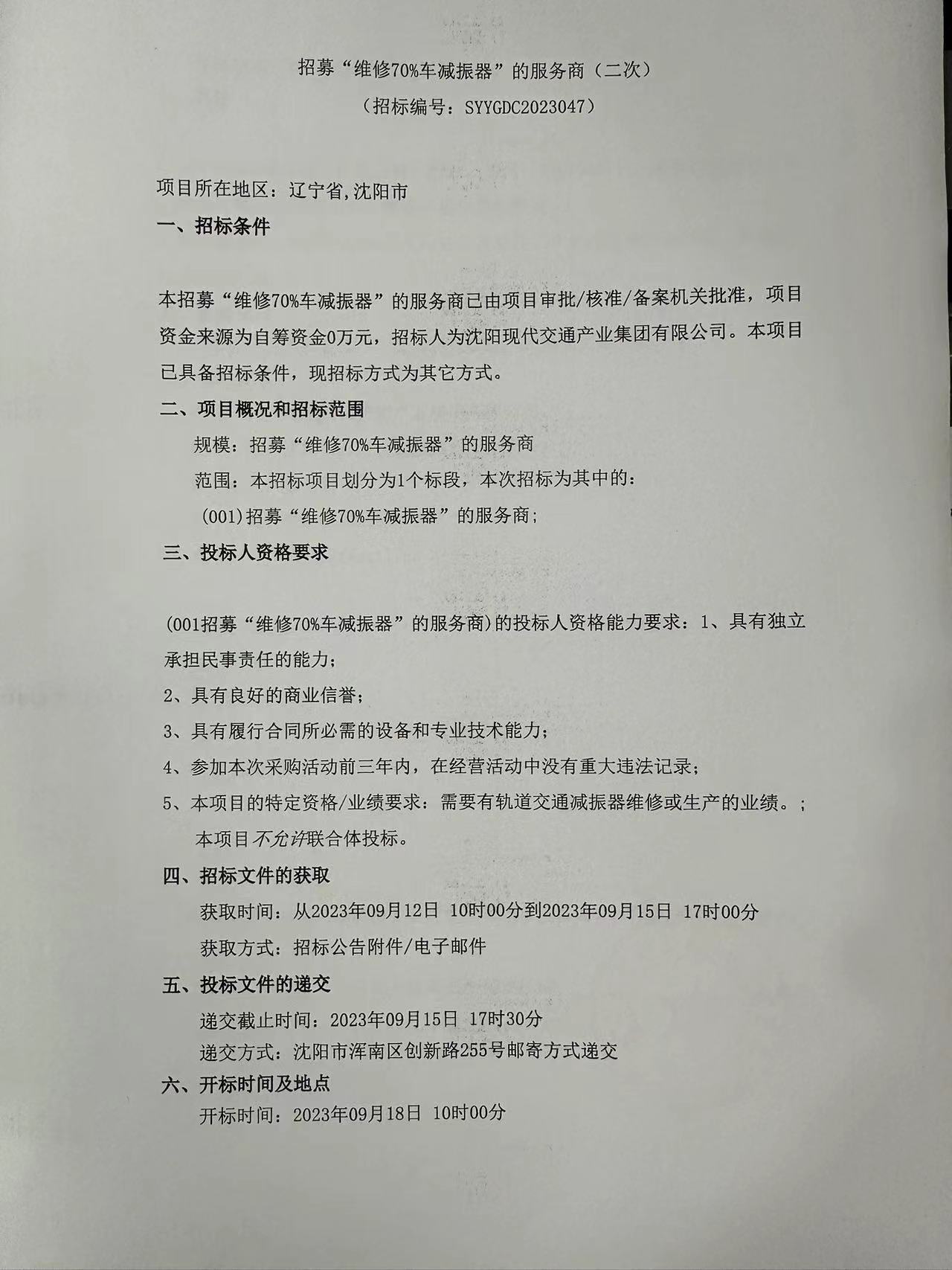 招募“维修70%车减振器”的服务商-递交文件模版及相关说明
