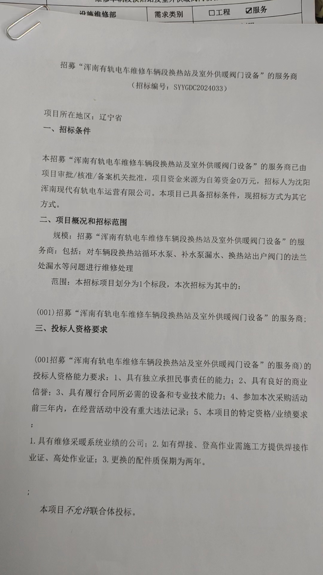 附件-招募“沈阳浑南有轨电车维修车辆段换热站及室外供暖阀门设备”的服务商