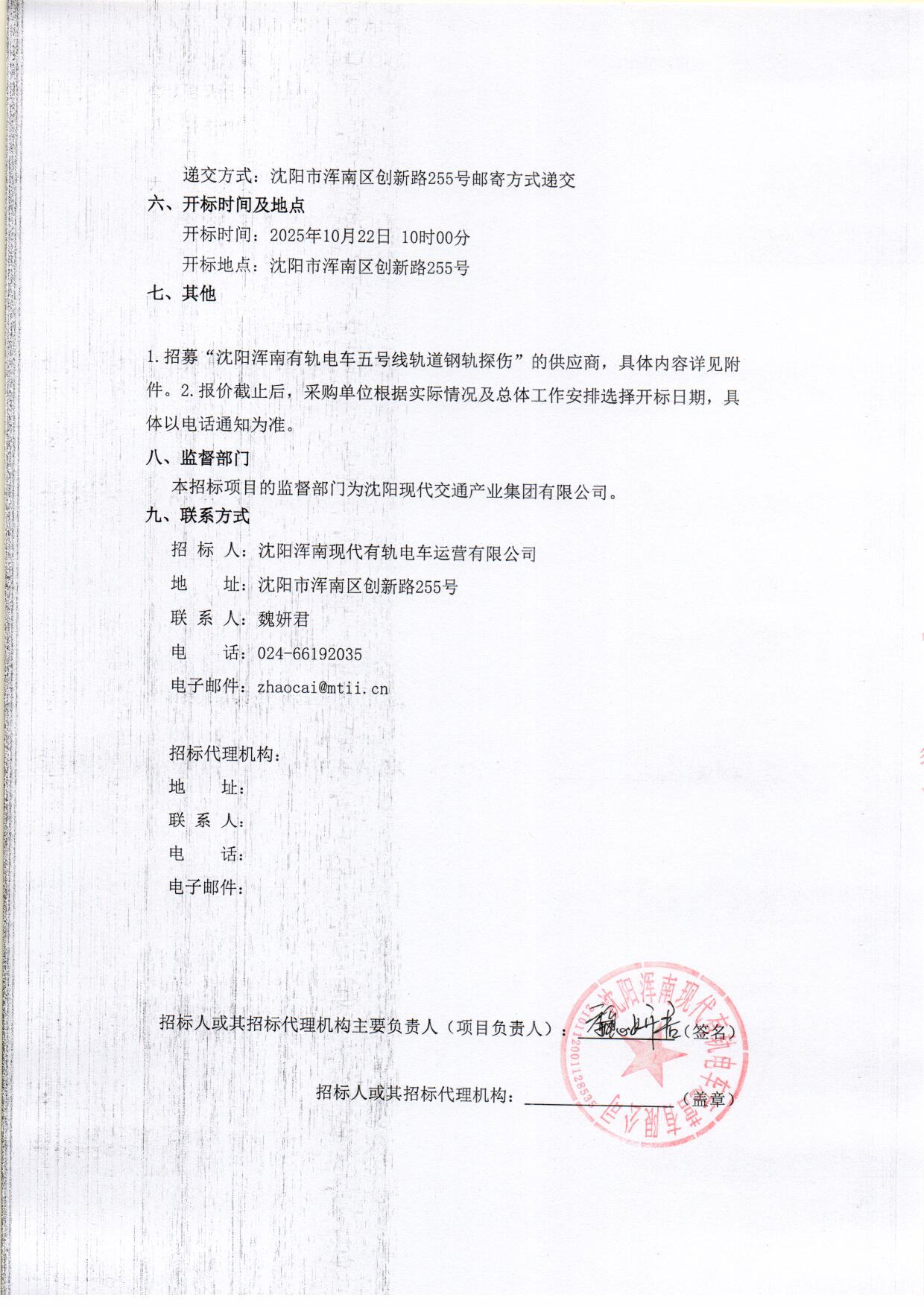 招募“沈阳浑南有轨电车五号线轨道钢轨探伤”的供应商-采购会议商务文件模版